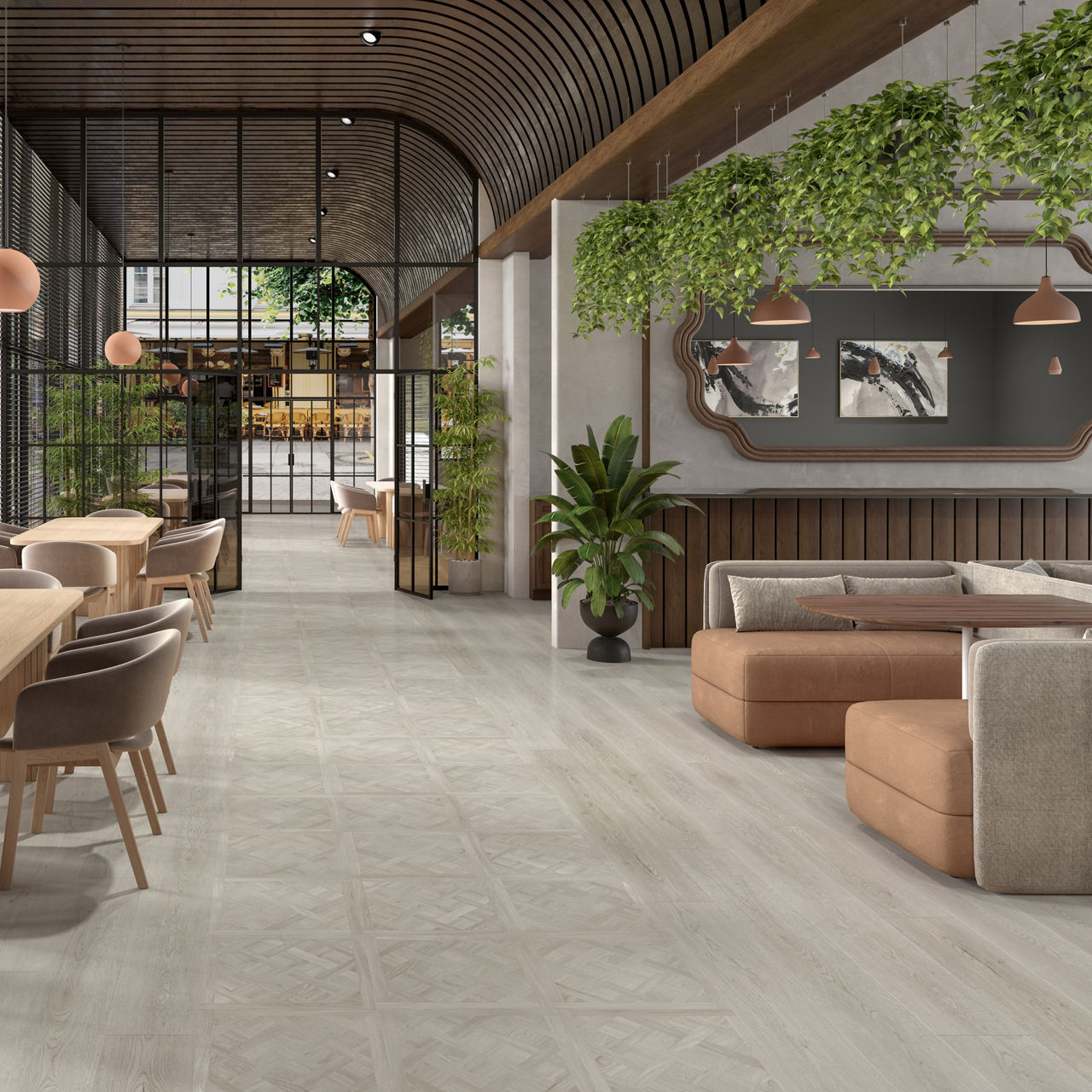 This wood-look luxury vinyl tile features natural grain detail with durable waterproof performance for modern commercial spaces. Each SKU features unique visual variation for added design authenticity.