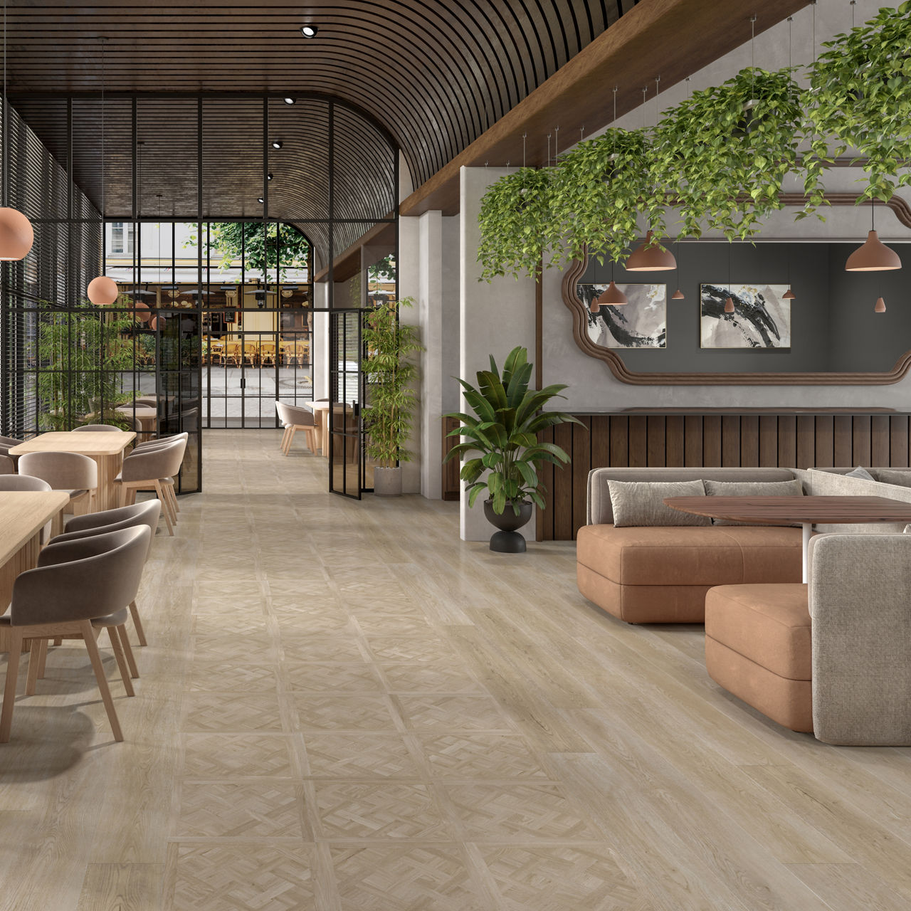 This wood-look luxury vinyl tile features natural grain detail with durable waterproof performance for modern commercial spaces. Each SKU features unique visual variation for added design authenticity.